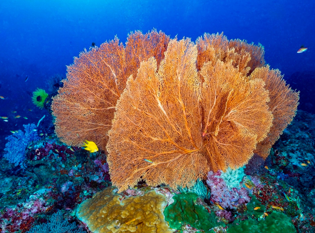 • Vibrant marine life, including sea turtles, colorful fish, and coral formations